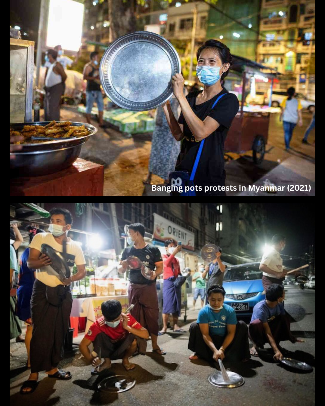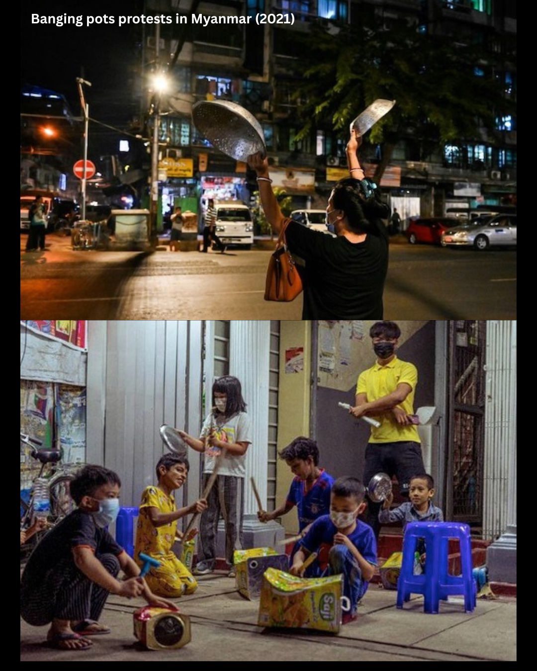 Banging pots is one of the earliest protests against the Myanmar military regime following their attempted coup in February 2021.